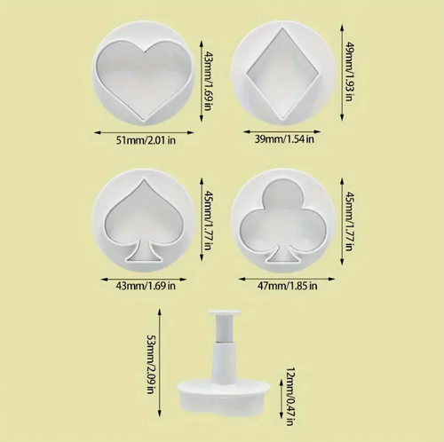Poker Plunger Cutter Set – 4pcs Card Suit Fondant & Cookie Cutters